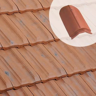 About d’arêtier grand modèle à emboîtement, en terre cuite, pour la finition des arêtiers.