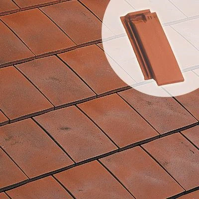 Demi-tuile à emboîtement, en terre cuite, permettant d’ajuster la longueur de couverture, ainsi que la jonction entre les rives et les tuiles normales.