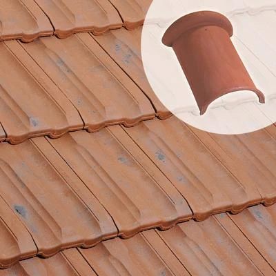 Faîtière ronde à emboîtement ou à bourrelet en terre cuite. pour la réalisation des faîtages.