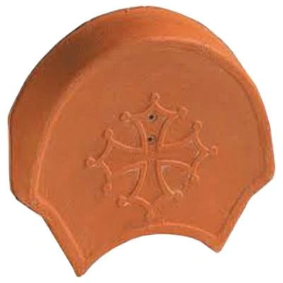 Fronton croix Occitane, en terre cuite, pour faîtière à pureau variable et rives rondes.