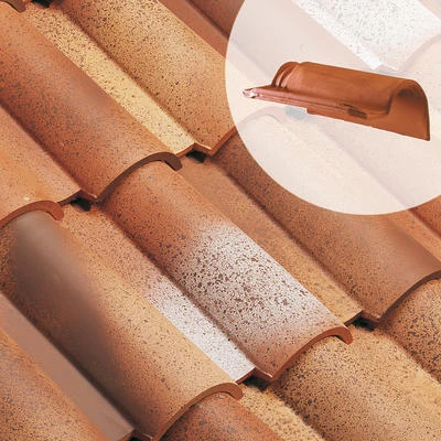 Tuile de rive en terre cuite à rabat droite à emboitement, gamme AQUITAINE. Permet la finition des rampants de pignon.
