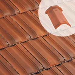 Tuile faîtière losangée à emboîtement en terre cuite.