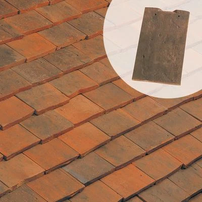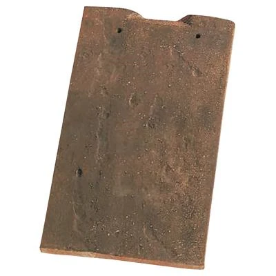 Tuile plate en terre cuite. Développée pour les monuments historiques, habitations anciennes ou les sites classés. Pureau brouillé. Teintes inégalables obtenu grâce à un système de cuisson ancestrale. Panachage possible entre différentes teintes.