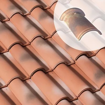Tuile demi-ronde, en terre cuite, destinée à la réalisation des faîtages et arêtier.