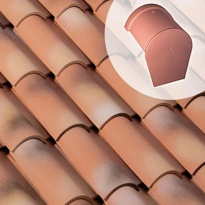 Faîtière d’about demi-ronde de 50 fin, en terre cuite, permettant la finition de la toiture.