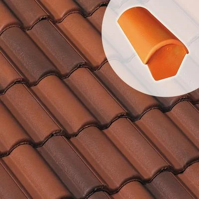 Tuile faîtière d’about de 42 (fin) en béton, permettant la finition de la toiture.