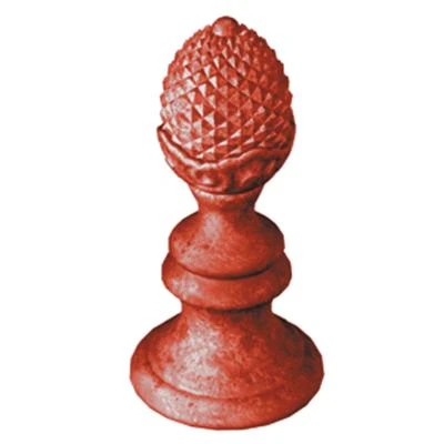 Poinçon, en terre cuite, en forme de pomme de pin, élément de décoration à positionner sur une rencontre 3 ou 4 départs.