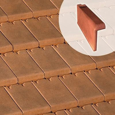 Tuile de rive à rabat gauche en terre cuite, permettant la finition des rampants de pignon.