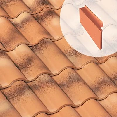 Tuile de rive à rabat gauche, en terre cuite, permettant la finition des rampants de pignon.
