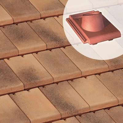 Tuile à douille, en terre cuite, diamètre int. du tuyau d’évacutaion : 90 mm.