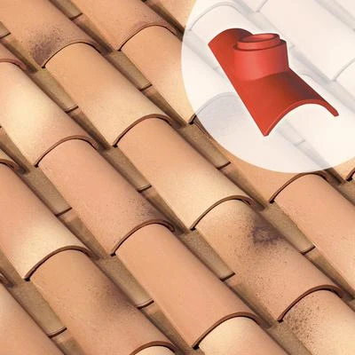 Tuile à douille, en terre cuite, diamètre int. du tuyau d’évacutaion : 100 mm.