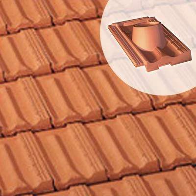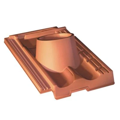 Tuile à douille, en terre cuite, diamètre int. du tuyau d’évacutaion : 120 mm.