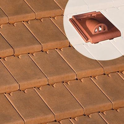 Tuile chatière grillagée, en terre cuite, assurant la ventilation de la sous-face des tuiles.
