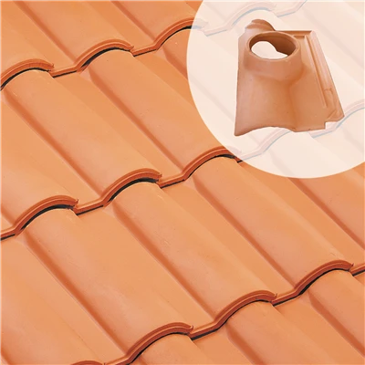 Tuile à douille, en terre cuite, diamètre int. du tuyau d’évacutaion : 125 mm.