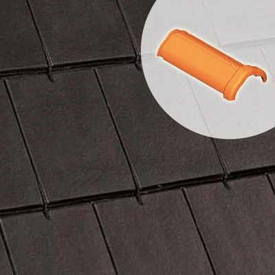 Arêtier, en terre cuite, permettant la finition de la ligne d’arêtier.