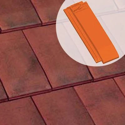 Demi-tuile, en terre cuite, permettant la jonction entre les tuiles normales et les tuiles de rives droites.