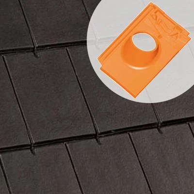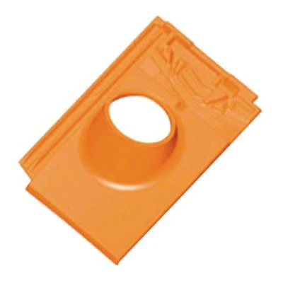 Tuile à douille, en terre cuite, diamètre int. du tuyau d’évacutaion : 100 mm.