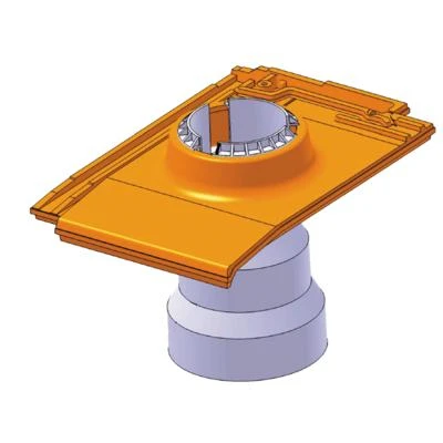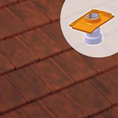 Tuile à douille, en terre cuite, diamètre int. du tuyau d’évacutaion : 100 mm.