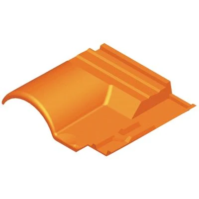 Tuile sous-faîtière, 1/2 pureau, en terre cuite. Permet une jonction parfaite entre le faîtage et les tuiles normales.
