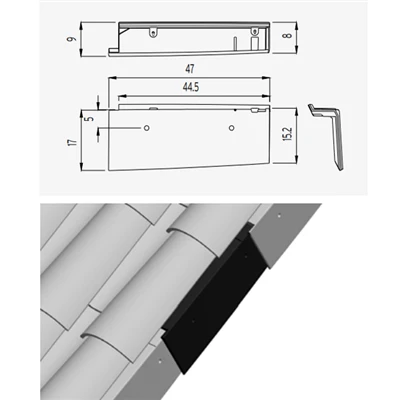 - Pièce en angle droit à placer au bord du pignon, tout le long du toit.